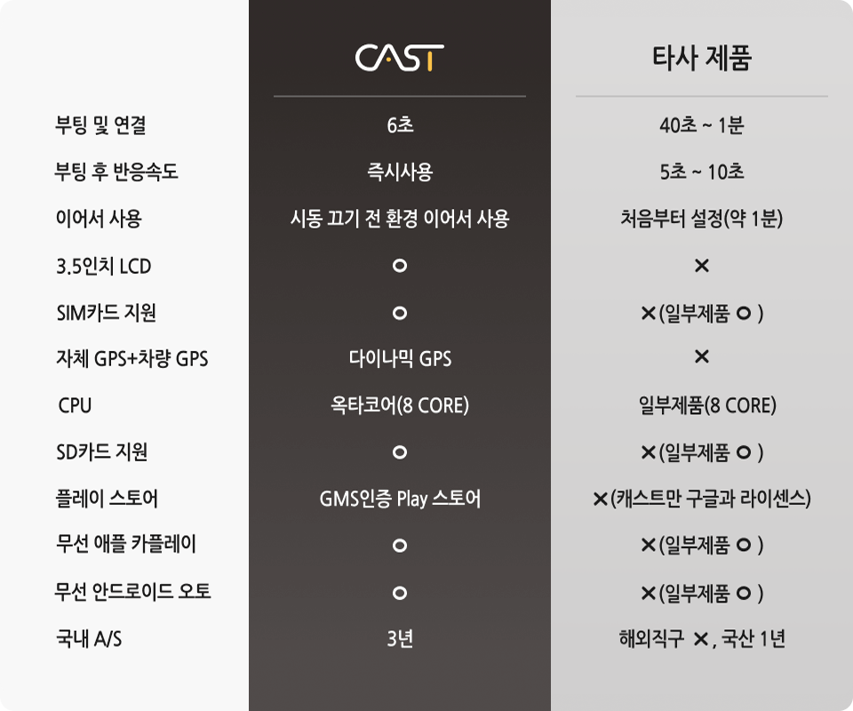 캐스트는 동종 제품 중 유일하게 Google GMS 인증 제품입니다.